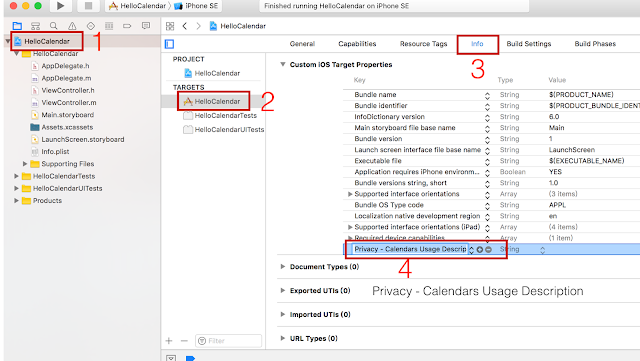 第四步驟要加入的值為Privacy - Calendars Usage Description,Value可以不填入任何資料。